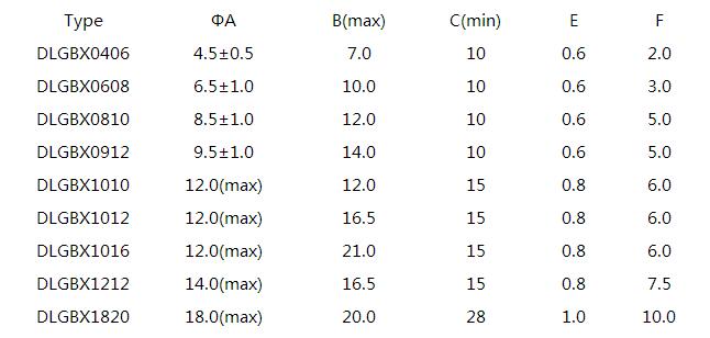 四、工字型電感DLGBX封裝尺寸列表